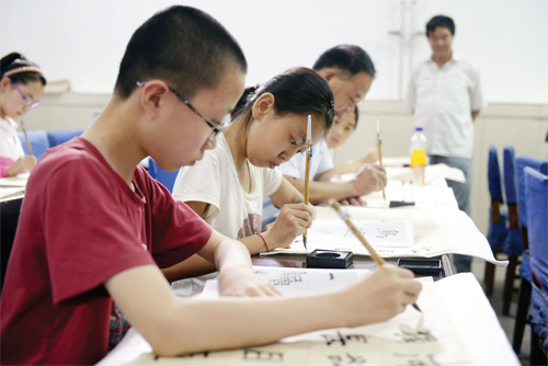 7 月17 日,在靜樂縣青少年文化活動中心,孩子們正在認(rèn)真練習(xí)書法。進(jìn)入暑期以來,該縣興趣特長班又火熱起來,學(xué)生們利用暑假時間投身于各自的興趣愛好之中,讓自己的假期變得更為充實(shí)、更有意義。(閆曉梅 攝)