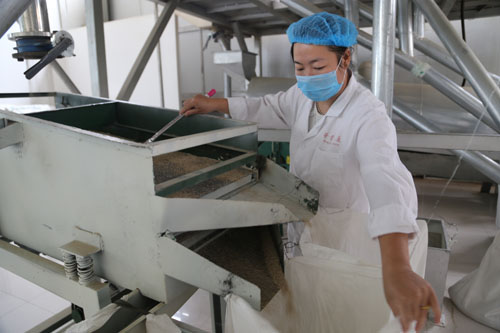 7月22日,靜樂縣華青藜麥產(chǎn)品開發(fā)有限公司的員工在篩選藜麥產(chǎn)品。這個綜合性農(nóng)業(yè)開發(fā)企業(yè),堅持走“企業(yè)管理+種植基地”的運作模式,積極推動藜麥、小雜糧等規(guī)?;N植經(jīng)營,成為當(dāng)?shù)貛ьI(lǐng)農(nóng)民致富的龍頭企業(yè)。(閆曉梅 攝)