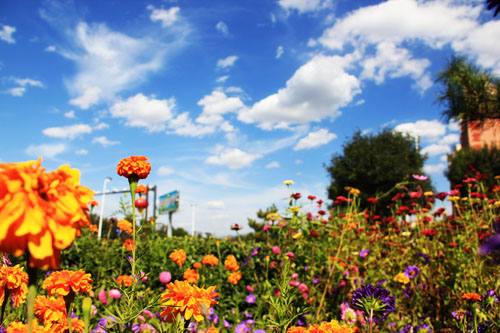 原平一座美麗富饒的北方小城,進入秋天,仍然是美不勝收,鮮花簇擁,泛黃的枝頭掛在秋天的果實,陪襯著藍天白云。