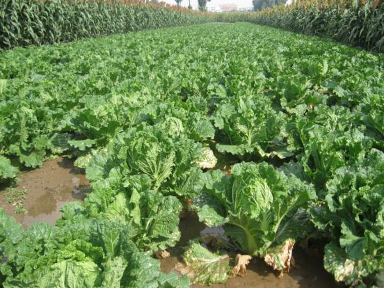 河曲縣南元村回茬大白菜,是晉陜蒙三角地區(qū)頂呱呱的招牌菜;每到晚秋,開車直接到地里買菜的縣內外群眾絡繹不絕。入秋以來,菜農在鋤草、施肥、澆水、打藥等多個環(huán)節(jié)進行科學管理,精心呵護,力求大白菜個頭大、包心實、賣相好、收入高。圖為剛剛澆過水的大白菜,葉子間還閃著水光呢。(賈金理 攝)