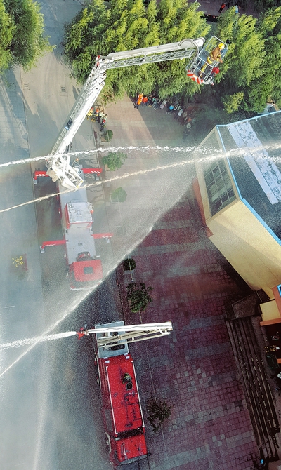 9月26日,在忻州師范學(xué)院內(nèi),當(dāng)?shù)叵啦块T舉行了國慶節(jié)前應(yīng)急疏散演練,其中包括滅火器材使用、火場逃生自救等演練項目。(樊晶璟 攝)