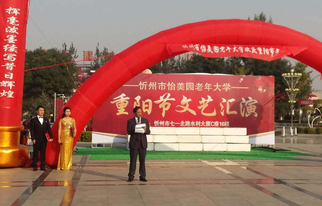 伴隨著怡美園老年大學(xué)全體學(xué)員共同表演的舞蹈《歡聚一堂》,忻州市怡美園老年大學(xué)校長鄧九高代表該校全體師生對老年朋友們致以節(jié)日的慰問,在表達(dá)了提倡繼續(xù)發(fā)揚(yáng)尊老愛老的中華傳統(tǒng)美德,經(jīng)營好自己的家庭,盡孝心、促和諧,為構(gòu)建美好和諧的社會氛圍貢獻(xiàn)力量的同時,也對年輕人寄以希望,享受生命,感恩陽光。