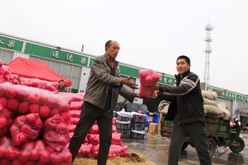10月23日,原平市果農(nóng)正在德金城農(nóng)產(chǎn)品交易市場(chǎng)卸貨,進(jìn)行銷售。原平市著力打通農(nóng)產(chǎn)品銷售渠道,通過(guò)創(chuàng)建市場(chǎng)、加強(qiáng)管理,將當(dāng)?shù)剞r(nóng)產(chǎn)品規(guī)范到統(tǒng)一銷售場(chǎng)所,抱團(tuán)銷售農(nóng)產(chǎn)品,不僅方便了消費(fèi)者,而且便于走出去,打造知名品牌。(吉建平 攝)
