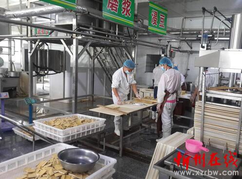 一套套全新的機(jī)械設(shè)備不停地運(yùn)轉(zhuǎn),新鮮的大黃豆經(jīng)過(guò)浸泡——?dú)⒕{——過(guò)濾——煮漿——混合——凝固——?jiǎng)澞X——壓制成型,透著香味的豆腐干經(jīng)過(guò)真空包裝,通過(guò)物流運(yùn)往北京、太原、大同等地的超市,這是繁峙縣綠源亨通食品有限公司豆腐干生產(chǎn)線,2016年已加工500噸豆腐干,實(shí)現(xiàn)產(chǎn)值500萬(wàn)元,帶動(dòng)周邊上百名農(nóng)民增收。(喬偉 攝)