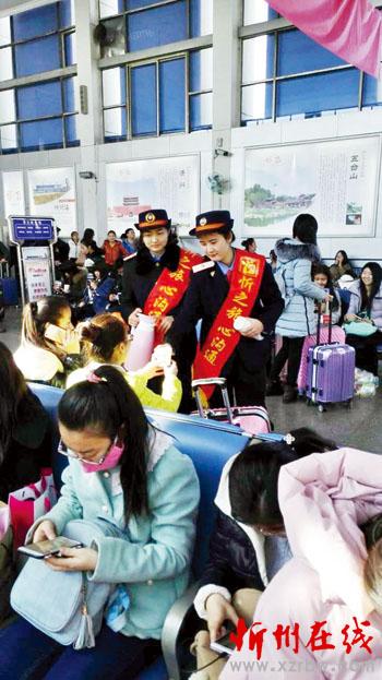 春運(yùn)第一天,忻州站為確保今年春運(yùn)旅客運(yùn)輸組織的安全有序,實(shí)現(xiàn)“平安春運(yùn)、有序春運(yùn)、溫馨春運(yùn)”的目標(biāo),全面部署,優(yōu)化組織流程,強(qiáng)化重點(diǎn)崗位配置,制訂了相關(guān)應(yīng)急預(yù)案,在人力、物力等方面做足了充分準(zhǔn)備。圖為工作人員為旅客送水(志遠(yuǎn)/文 明強(qiáng)/圖)
