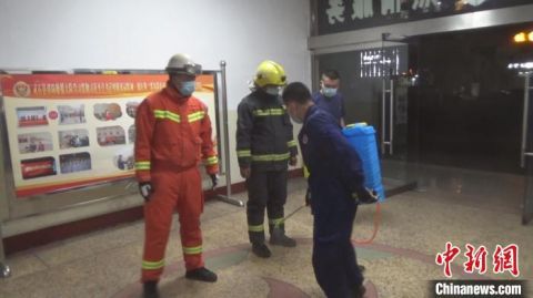 捕捉蝙蝠歸隊(duì)之后,所有消防員都接受殺菌消毒。 周洋 攝 同日21時許,一只蝙蝠飛行中撞在了靈石縣新建街一戶居民的紗窗門上無法動彈。因擔(dān)心蝙蝠攜帶病毒較多,居民不敢處置,當(dāng)即報警求助。