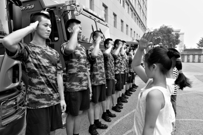 在朝陽區(qū)公安消防支隊左家莊消防中隊,樂樂在“北京少年兒童消防嘉年華”活動中,第一次撥打了火警電話。