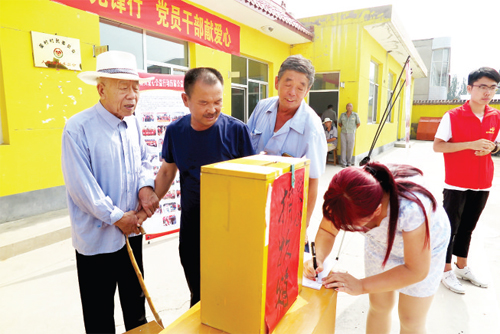 8月7日,“忻州愛心公益行動”團隊一行一百多人,穿著統(tǒng)一的紅馬甲,一大早就出發(fā),驅(qū)車來到了距忻州市區(qū)十幾公里的蘭村鄉(xiāng)晏村。剛進村委會大院,就看到了等候著的宿香玲一家以及鄉(xiāng)政府、村委會的工作人員?!瓣P(guān)愛貧困生,共筑大學(xué)夢”,紅色醒目的條幅傳遞出了大家此行的目的和心聲。此次,“忻州愛心公益行動”團隊不僅為貧困學(xué)生宿香玲一家?guī)砹松钣闷泛腿沼闷?,而且送來了資助宿香玲完成大學(xué)學(xué)業(yè)的善款3萬余元。當(dāng)天晏村村委會黨員干部們也主動牽頭,開展“兩學(xué)一做”先鋒行、黨員干部獻愛心活動,現(xiàn)場為宿香玲籌得善款930元。新希望學(xué)校代表也為宿香玲一家送來了米面油等生活用品以及1000元現(xiàn)金。