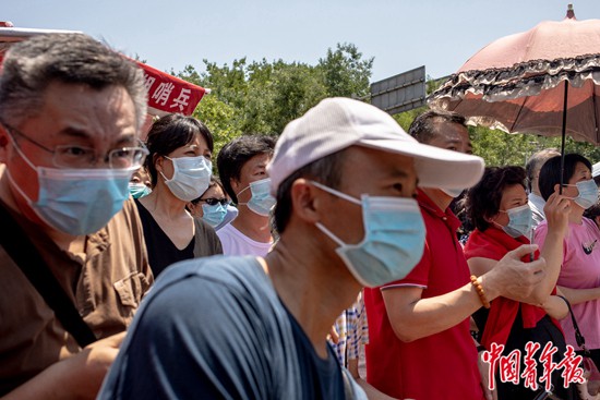 7月7日上午,北京市第八十中學門口,高考語文考試結束后,等待考生的家長們。中青報·中青網(wǎng)記者 李雋輝/攝