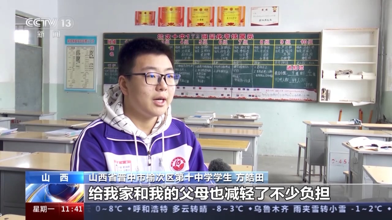 山西省晉中市榆次區(qū)第十中學(xué)學(xué)生 方皓田:學(xué)校為我們每個(gè)學(xué)生都上了校方責(zé)任險(xiǎn),算下來醫(yī)療費(fèi)除醫(yī)保報(bào)銷部分以外,剩余的12000多元都給我報(bào)銷了,給我家和我的父母也減輕了不少負(fù)擔(dān)。
