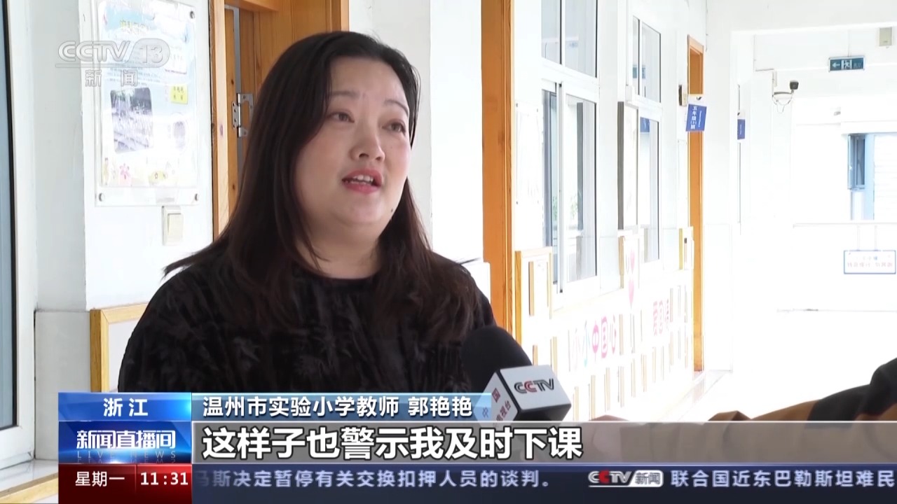 溫州市實(shí)驗(yàn)小學(xué)教師 郭艷艷:這個(gè)鈴聲是挺大的,我要是繼續(xù)上課的話,孩子們也不能夠很清楚地聽到我的聲音,這樣也警示我及時(shí)下課。
