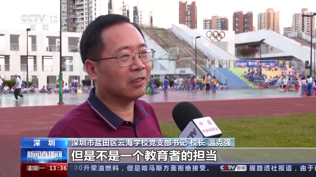 深圳市鹽田區(qū)云海學(xué)校黨支部書記、校長 溫克強(qiáng):怕出事情,怕?lián)?zé)任,就把學(xué)生課間圈養(yǎng),確實(shí)這個(gè)是省時(shí)省力,但是不是一個(gè)教育者的擔(dān)當(dāng),也不是一個(gè)學(xué)校的擔(dān)當(dāng)。應(yīng)該尊重教育規(guī)律,要為孩子們的健康著想。希望我們的孩子在這邊讀9年,他會(huì)科學(xué)地鍛煉,有這種鍛煉的好習(xí)慣,熱愛體育,熱愛生活,這就是我們追求的方向和育人目標(biāo)。