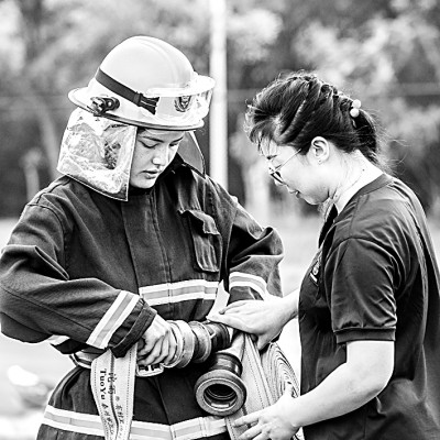 重慶電訊職業(yè)學(xué)院建筑消防專業(yè)(三年制)大二學(xué)生在輔導(dǎo)員指導(dǎo)下進(jìn)行訓(xùn)練。新華社發(fā)