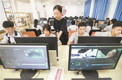 圖為河北省邯鄲市涉縣數(shù)字媒體專業(yè)學生在老師指導下學習影視后期剪輯。新華社發(fā)(郝群英攝)