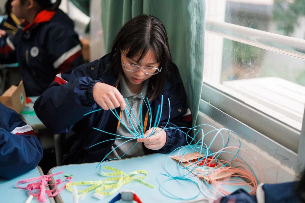 在廈門雙十中學開設的藤編課上,學生們發(fā)揮創(chuàng)意編制籃筐。(雙十中學供圖)