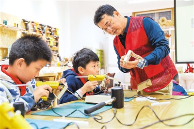 在多年的教學(xué)實踐中,陳少華發(fā)現(xiàn),很多孩子缺少動手能力,尤其是對科學(xué)技術(shù)類的興趣不大、手動不勤?!拔覀円煤米约旱膶iL,守護(hù)好孩子們的科學(xué)心。”在海曙區(qū)政協(xié)的支持下,這片不到100平方米的空間,成了陳少華踐行科普理念的試驗田。