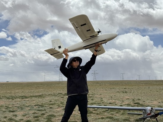 桂維振在可可西里放飛無人機(jī)。北京工業(yè)職業(yè)技術(shù)學(xué)院供圖