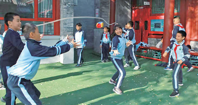 北京市東城區(qū)黑芝麻胡同小學(xué)圓恩寺校區(qū)位于一條胡同里,空間略顯局促。學(xué)校發(fā)布了“課間活動(dòng)征集令”,把課間15分鐘交給學(xué)生自己設(shè)計(jì)和策劃。“編花籃3個(gè)人就能玩,不占地方”“可以觀察、養(yǎng)護(hù)池塘邊的植物”“華容道、九連環(huán)”……學(xué)生們紛紛為課間活動(dòng)支招。