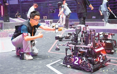 5月21日至5月25日,全國大學(xué)生機(jī)器人大賽——RoboMaster2025機(jī)甲大師超級對抗賽·區(qū)域賽(中部賽區(qū))在湖南省長沙市舉行。圖為合肥工業(yè)大學(xué)蒼穹戰(zhàn)隊(duì)隊(duì)員在比賽間隙調(diào)試機(jī)器人。新華社記者 陳振海攝