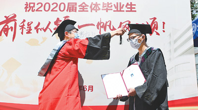 8日,華中科技大學(xué)校長為畢業(yè)生寫下祝福語。朱必勇攝 6月8日上午10時,在華中科技大學(xué)紫菘宿舍樓下,一場小型的學(xué)位授予儀式舉辦,物理學(xué)院院長陳相松教授站在寫著“前程似錦,一帆風(fēng)順”的展架前,為畢業(yè)生們“撥穗”。 接過學(xué)位證書,本科畢業(yè)生蔡杰和院長拍了一張合影。他說:“沒有遺憾了,這個畢業(yè)典禮特殊而完美!” 掛彩旗、拉橫幅、車站相迎,8日,武漢多所高校像迎新一樣迎接畢業(yè)生返校。 華中科技大學(xué)南門口,搭起每年迎新才有的遮陽棚。學(xué)校派出專車在武漢三大火車站和天河機(jī)場迎候,學(xué)生抵達(dá)后,先在遮陽棚里消毒、掃碼、登記。如有學(xué)生沒有核酸檢測報告,則由校醫(yī)院醫(yī)護(hù)人員當(dāng)場進(jìn)行核酸檢測和抗體檢測??贵w檢測一刻鐘左右出結(jié)果。 “所有檢測全部免費(fèi),返校前提前檢測的學(xué)生,其檢測費(fèi)用學(xué)校也統(tǒng)一報銷。”華中科技大學(xué)副校長梁茜介紹,學(xué)校為每個畢業(yè)生準(zhǔn)備了一份防疫健康包,里面裝有印著校徽的環(huán)保袋、口罩、手套、消毒濕巾、體溫計、消毒液等防護(hù)物資。學(xué)校還為每位畢業(yè)生發(fā)放100元餐費(fèi),用于自行去食堂選購畢業(yè)套餐。 華中科技大學(xué)校史館旁,豎起一面“小清新”風(fēng)格的迎新標(biāo)語,“愿你歷盡千帆,歸來仍是少年”,畢業(yè)生們紛紛駐足留影。在韻苑12棟樓下的遮陽棚里,應(yīng)光電學(xué)院畢業(yè)生劉一哲的請求,校長李元元拿起簽字筆,在其文化衫上寫下祝福語。 “離校印象與進(jìn)校印象一樣重要,都會深深地記錄在學(xué)生心里,一定要讓學(xué)生們感受到溫暖。”武漢大學(xué)校長竇賢康說,迎接畢業(yè)生返校,學(xué)校做了充分準(zhǔn)備。 武漢大學(xué)校園開放了多處標(biāo)志性地點(diǎn)供畢業(yè)生拍照,橫幅隨處可見:“從最美大學(xué)畢業(yè),為最美人生拼搏,為最強(qiáng)中國奮斗”“不懼路遙歲月長,回首仍在珞珈山”。 在武漢大學(xué)測繪遙感信息工程國家重點(diǎn)實驗室,老師們下樓迎接博士畢業(yè)生代文霞?xì)w來。師生們拿著寫有“英雄的城市,英雄的人民”“山水一程,三生有幸”等字樣的標(biāo)牌拍下一張?zhí)厥獾暮嫌啊?/p> 據(jù)了解,武漢大學(xué)今年共有1.5萬名畢業(yè)生,今天有近1萬人回到學(xué)校,返校學(xué)生中沒有發(fā)現(xiàn)一例核酸檢測結(jié)果異常。 學(xué)子歸來,風(fēng)景最美。從6月8日起,越來越多的應(yīng)屆畢業(yè)生和有科研任務(wù)的研究生,按照“錯時錯峰、自愿申請、非必須不返校”的原則陸續(xù)返校。(記者 程遠(yuǎn)州) (責(zé)任編輯:盧相汀) |
