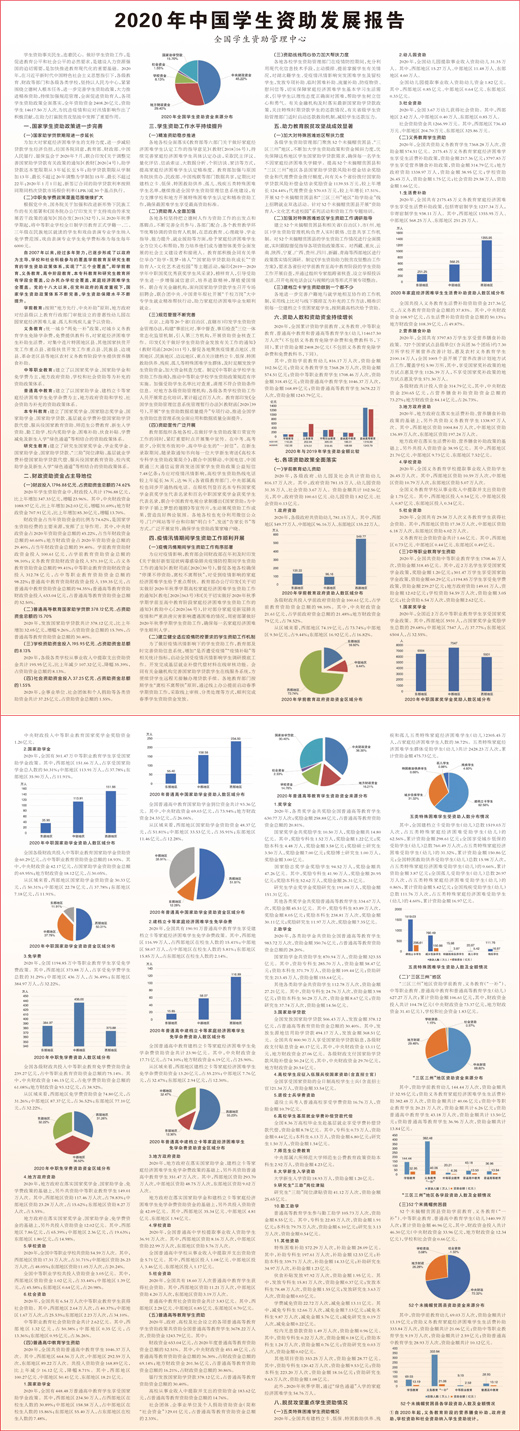 學(xué)生資助事關(guān)民生,連著民心。做好學(xué)生資助工作,是促進(jìn)教育公平和社會公平的必然要求,是建設(shè)人力資源強(qiáng)國的迫切需要,是加快推進(jìn)教育現(xiàn)代化的重要基礎(chǔ)。2020年,在習(xí)近平新時代中國特色社會主義思想指引下,各級教育、財政等部門和各級各類學(xué)校,堅持以人民為中心,緊緊圍繞立德樹人根本任務(wù),進(jìn)一步完善學(xué)生資助政策,大力推進(jìn)精準(zhǔn)資助,持續(xù)加強(qiáng)規(guī)范管理,全面促進(jìn)資助育人,各項學(xué)生資助政策全面落實,全年資助資金2408.20億元,資助學(xué)生14617.50萬人次,為抗擊疫情和應(yīng)對汛情影響作出了積極貢獻(xiàn),在助力打贏脫貧攻堅戰(zhàn)中發(fā)揮了重要作用。