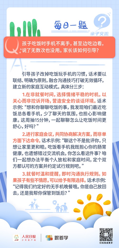 每日一題丨孩子吃飯玩手機屢教不改,該如何引導(dǎo)?