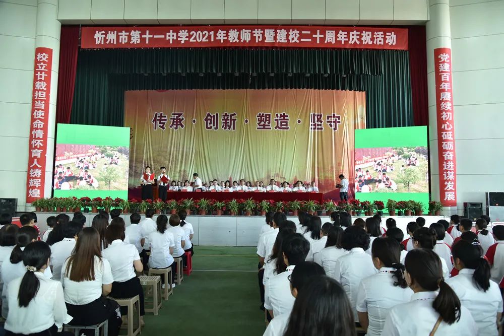 “賡續(xù)百年初心,擔(dān)當(dāng)育人使命”。9月10日上午,忻州十一中隆重舉行“2021年教師節(jié)暨建校二十周年慶?;顒?dòng)”,校領(lǐng)導(dǎo)、全體教職員工、家長(zhǎng)代表、學(xué)生代表歡聚一堂,同念恩師情,共憶二十程、感沐黨深恩、聚力鑄師魂。