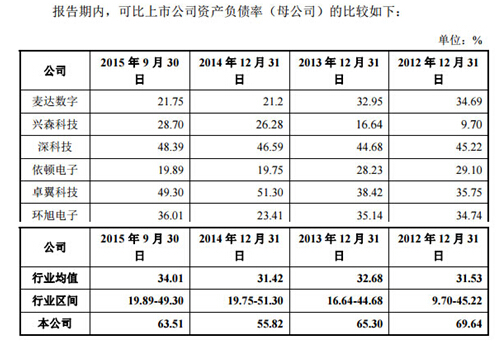 招股書顯示,2015年9月末,易德龍資產(chǎn)負(fù)債率較2014年上升近8個(gè)百分點(diǎn)至63.51%,比招股書所列同行業(yè)上市公司平均資產(chǎn)負(fù)債率高出近30個(gè)百分點(diǎn)。其中的主要負(fù)債是流動(dòng)負(fù)債,截至2015年9月末,流動(dòng)負(fù)債在負(fù)債中的占比高達(dá)95%,而同行業(yè)已上市公司平均占比為80.41%。