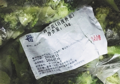 只見加熱后袋裝西蘭花標(biāo)簽上的生產(chǎn)日期已被浸泡模糊。一名女店員直接用剪刀剪開兩袋,倒入盆內(nèi)清洗,有些西蘭花顏色已變黃。該店員直接將變了顏色和蔫了的挑出,扔進垃圾桶。西蘭花的外包裝保質(zhì)期顯示為7月13日至7月16日。凈含量為1kg。對于過期西蘭花為何還要用?一名女店員說:“今天用西蘭花配菜都是過期的,不用咋辦?”