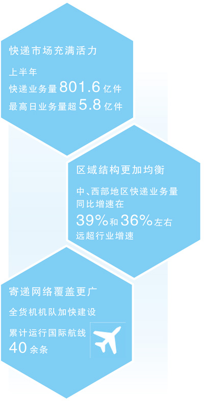 “上半年,市場發(fā)展動力強勁,行業(yè)統(tǒng)籌全網(wǎng)資源,在有效滿足多樣化寄遞需求的同時,助力消費需求持續(xù)釋放?!眹亦]政局有關負責人表示。