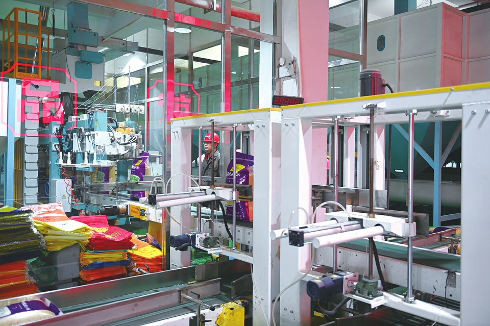 9月5日,五寨縣雜糧產(chǎn)業(yè)園內(nèi),工作人員正用全自動生產(chǎn)線裝運雜糧。該產(chǎn)業(yè)園是集農(nóng)產(chǎn)品生產(chǎn)、加工、倉儲、物流、市場營銷、品牌建設(shè)于一體的農(nóng)產(chǎn)品精深加工產(chǎn)業(yè)園,實現(xiàn)年銷售收入14.6億元。