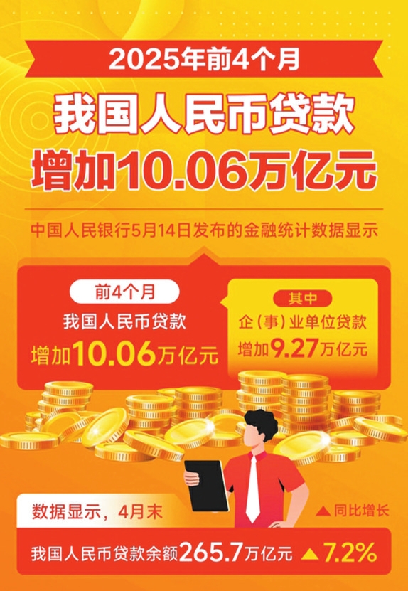 數(shù)據(jù)顯示,前4個(gè)月,我國企(事)業(yè)單位貸款增加9.27萬億元,其中中長期貸款增加5.83萬億元。也就是說,超9成的新增貸款投向了企業(yè),其中中長期貸款占比超6成,為企業(yè)投資和生產(chǎn)提供了穩(wěn)定而有力的支持。