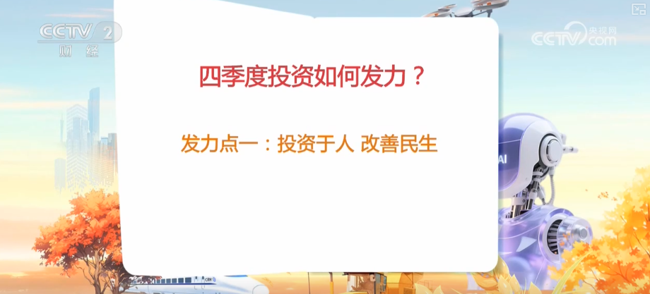 國家信息中心經(jīng)濟預(yù)測部產(chǎn)業(yè)經(jīng)濟研究室主任魏琪嘉介紹,四季度整個投資的重點領(lǐng)域,很多集中于民生項目建設(shè)方面,包括城市更新改造,地下管廊改造,包括停車場建設(shè)以及高標(biāo)準(zhǔn)農(nóng)田等,這些事關(guān)民生的一些重點的領(lǐng)域,實現(xiàn)這種投資于物與投資于人的這種高效協(xié)同,更多的投資于人。