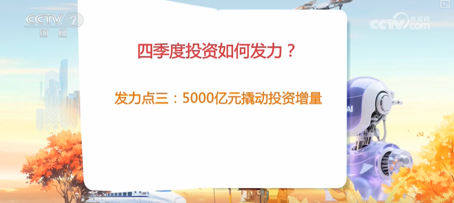 央視網(wǎng)消息:投資是拉動經(jīng)濟增長的“三駕馬車”之一。四季度,國內(nèi)投資發(fā)力的重點在哪里,專家進行了權(quán)威解讀。