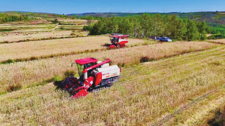 寧武縣萬畝莜麥種植基地正在進(jìn)行機(jī)械化收割。吳光宇攝