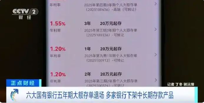 記者查詢工、農(nóng)、中、建、交、郵儲(chǔ)六大國有銀行的App發(fā)現(xiàn),五年期大額存單已不顯示,三年期相關(guān)產(chǎn)品的利率普遍降到1.5%至1.75%。此外,部分中小銀行也開始密集調(diào)整存款業(yè)務(wù)。梅州客商銀行近期公告已下架五年期定期存款產(chǎn)品,億聯(lián)銀行等機(jī)構(gòu)App也已不顯示五年期大額存單。