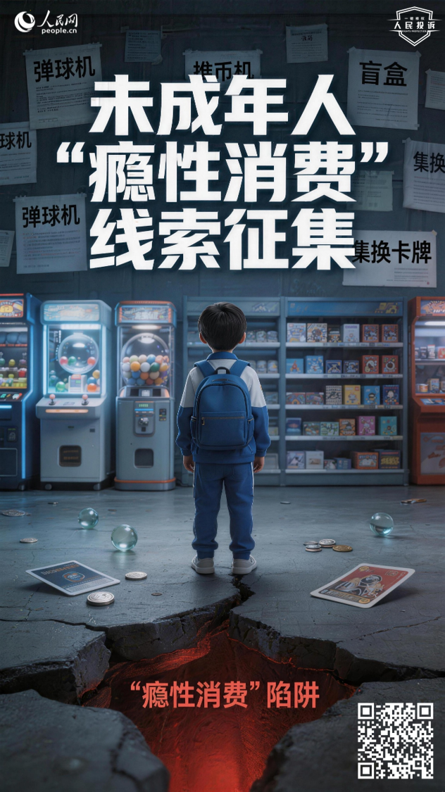 從彈珠機(jī)、推幣機(jī)到集換卡牌、盲盒扭蛋,一些線下消費(fèi)場所正利用“隨機(jī)獎勵(lì)”“差一點(diǎn)就中”等心理機(jī)制,讓孩子反復(fù)投入、難以自拔,卻無年齡限制或防沉迷提示。孩子的成長不該被“癮性陷阱”裹挾,未成年人的合法權(quán)益更應(yīng)得到堅(jiān)實(shí)守護(hù)。即日起,人民網(wǎng)“人民投訴”平臺征集未成年人“癮性消費(fèi)”線索。如果您遇到以下情況,請告訴我們: