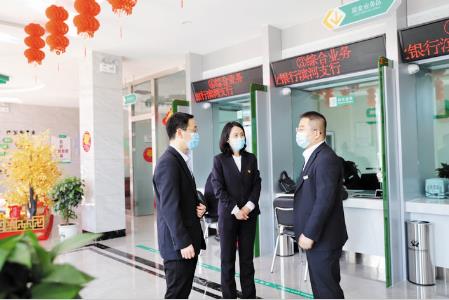 繁峙農(nóng)商銀行董事長李紅梅、行長宿俊斌在濱河支行檢查指導(dǎo)工作