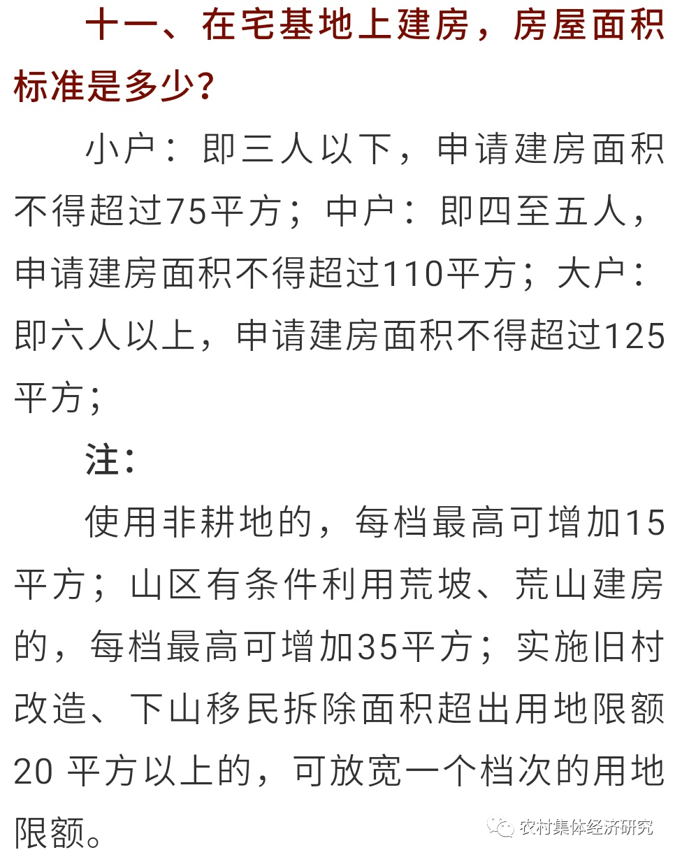 十、農(nóng)村宅基地面積標(biāo)準(zhǔn)是多少?根據(jù)《土地管理法》相關(guān)規(guī)定:農(nóng)村宅基地用地標(biāo)準(zhǔn):占用農(nóng)用地每處不超過200平方米(0.30畝),占用建設(shè)用地和未利用地每處不超過233平方米(0.35畝)。同時(shí)《土地管理法》第62條規(guī)定:農(nóng)村村民宅基地面積不得超過省、自治區(qū)、直轄市規(guī)定的標(biāo)準(zhǔn)。也就是說農(nóng)村宅基地按照各個(gè)省、自治區(qū)或直轄市相關(guān)的規(guī)定,全國并沒有統(tǒng)一的計(jì)算方法,因?yàn)樯婕暗缴絽^(qū)、平原、草原等地理形勢的因素,每個(gè)地區(qū)的政策不同。