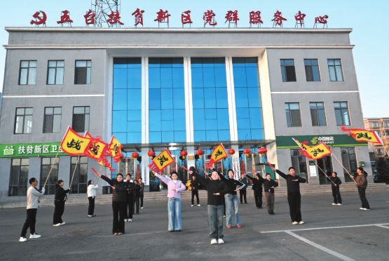 正月初八,走進(jìn)位于五臺縣東雷鄉(xiāng)的扶貧新區(qū)社區(qū),夕陽余暉灑滿這片占地26萬平方米的集中安置區(qū)。13棟六層居民樓內(nèi)年味濃郁,街道上紅燈籠高懸,家家戶戶門前張貼著紅彤彤的對聯(lián)。辦公樓前的廣場上鼓樂悠揚、彩旗飄飄,由社區(qū)牽頭、居民自發(fā)參與的秧歌隊正加緊排練,準(zhǔn)備參加該縣元宵節(jié)文藝匯演。圍觀居民的歡聲笑語與參與者的歡快舞姿,勾勒出一幅溫馨熱鬧的新春畫卷。