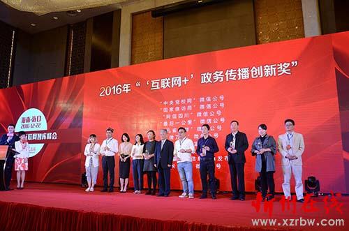 本報(bào)訊 12月22日,首屆全國互聯(lián)網(wǎng)智庫峰會暨第四屆網(wǎng)絡(luò)輿情論壇在海南省海口市隆重召開。中央及各省(市、自治區(qū))宣傳和網(wǎng)信部門領(lǐng)導(dǎo)、國內(nèi)業(yè)界知名專家、學(xué)者、政務(wù)新媒體代表等200余人齊聚一堂,圍繞“‘十三五’供給側(cè)改革背景下輿論新格局”主題,深入探討互聯(lián)網(wǎng)內(nèi)容建設(shè)與供給、政務(wù)輿情回應(yīng)和引導(dǎo)的新理念、新思路、新格局。會議期間,舉行了2016年“互聯(lián)網(wǎng)+政務(wù)傳播創(chuàng)新獎”、“政務(wù)輿情回應(yīng)優(yōu)秀獎”、“城市新媒體傳播優(yōu)秀獎”和“全國政法新媒體建設(shè)優(yōu)秀獎”頒獎儀式。忻州隨手拍榮獲2016年全國“互聯(lián)網(wǎng)+政務(wù)傳播創(chuàng)新獎”,為十佳之一。