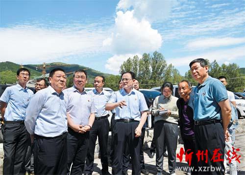 圖為省人大常委會副主任、市委書記李俊明在五臺山風景名勝區(qū)金界寺村調研特色風貌整治情況。