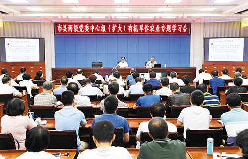 圖為市縣兩級黨委中心組(擴(kuò)大)有機(jī)旱作農(nóng)業(yè)專題學(xué)習(xí)會會場。本報記者 劉紀(jì)森 攝