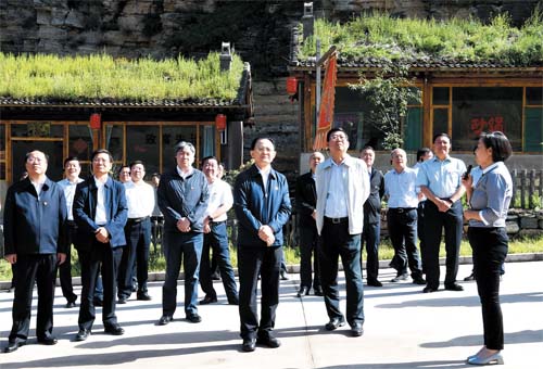 省人大常委會副主任、市委書記李俊明和參會人員在寧武縣涔山鄉(xiāng)大石洞村觀摩整村提升情況。本報記者 劉紀森 攝