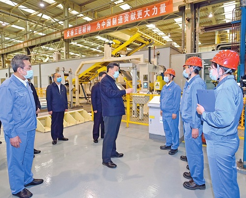 5月12日上午,習近平在太鋼不銹鋼精密帶鋼有限公司生產(chǎn)車間,了解企業(yè)復工復產(chǎn)情況。
