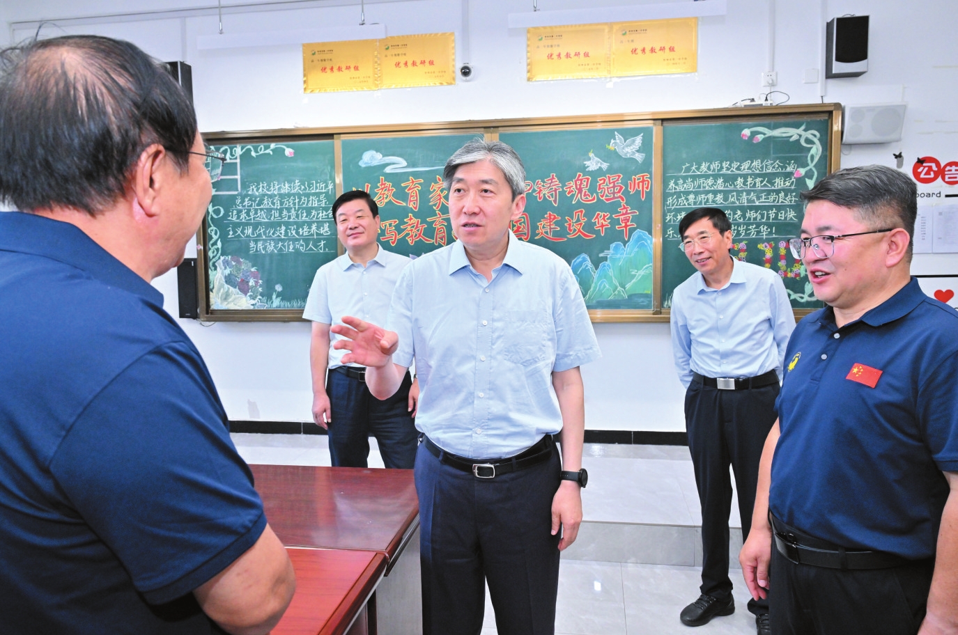 經(jīng)過幾年來在教育領(lǐng)域的連續(xù)投入,我市的學(xué)校布局優(yōu)化、校舍新建改造、設(shè)施更新提升、教師人才充實(shí)等工作成效逐步顯現(xiàn),一批新校園、新校舍、新設(shè)施等紛紛啟用,成為忻州高質(zhì)量發(fā)展的潛力所在。李建國一行在各個(gè)學(xué)??赐繂栆痪€教師職工,察看改造中或已啟用的操場、建成啟用的教學(xué)樓和多功能教室等設(shè)施,耐心詢問新校區(qū)教師的切身感受、通勤等工作生活情況,詳細(xì)了解學(xué)校的服務(wù)半徑、師資力量、薪酬待遇等情況,感謝廣大教師扎根三尺講臺、傳道授業(yè)解惑,引導(dǎo)一屆屆學(xué)生樹立崇高理想和遠(yuǎn)大志向,為忻州教育事業(yè)作出的無私奉獻(xiàn)。