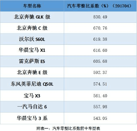 對(duì)于老百姓而言,在得知北京奔馳 GLK級(jí)配件的價(jià)格總和可以買 8輛整車時(shí),可能也僅僅是增添了對(duì)這部分車主的“羨慕”,然而,奔馳寶馬在我國(guó)說(shuō)到底本就不是平民車。那么,我們就來(lái)看看 2017年一季度賣得最好的幾個(gè)品牌車型的零整比系數(shù)如何,下面的數(shù)據(jù)對(duì)你買車真的有幫助呦!