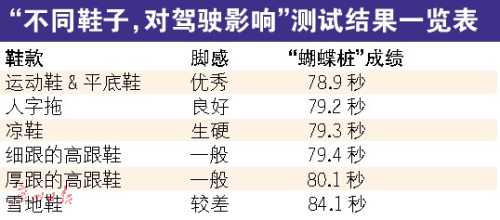 高跟鞋的高跟、拖鞋和涼鞋的不貼腳,常常被認(rèn)為是女司機(jī)發(fā)生交通事故的罪魁禍?zhǔn)住H欢?,在《新交?guī)罰款細(xì)則表》中,并沒有對(duì)駕駛員所穿的鞋有什么處罰條款。拖鞋和高跟鞋,真會(huì)影響駕駛,還是被冤枉的“背鍋俠”,是該有一個(gè)準(zhǔn)確的答案了。此次非常測試,目的在于找出不同鞋子,對(duì)駕駛的影響。