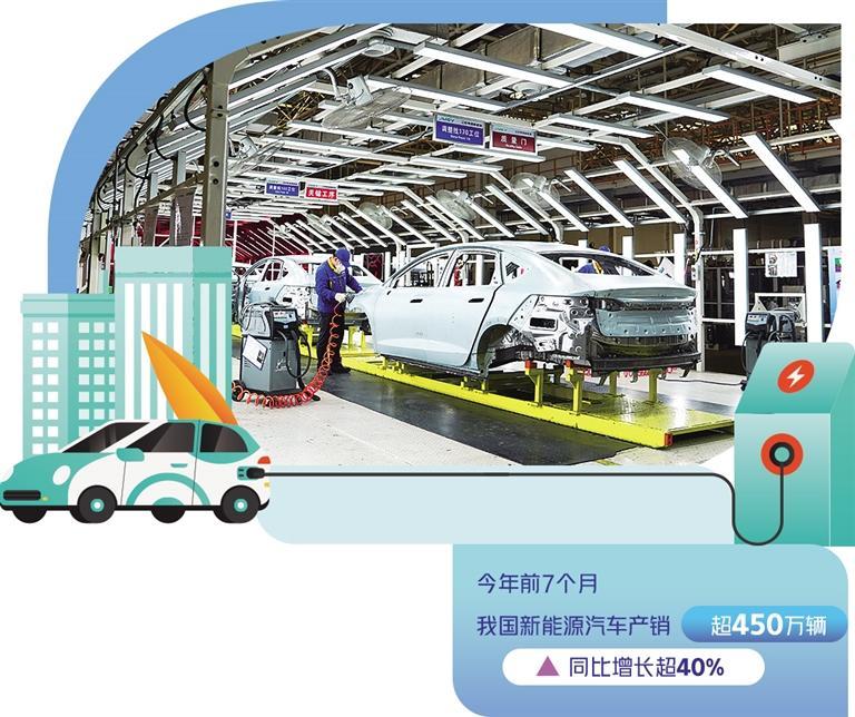 新能源汽車(chē)是全球汽車(chē)產(chǎn)業(yè)轉(zhuǎn)型升級(jí)、綠色發(fā)展的主要方向,也是我國(guó)汽車(chē)產(chǎn)業(yè)高質(zhì)量發(fā)展的戰(zhàn)略選擇。今年前7個(gè)月,我國(guó)新能源汽車(chē)產(chǎn)銷(xiāo)超過(guò)450萬(wàn)輛,同比增長(zhǎng)超過(guò)40%。其中,出口63.6萬(wàn)輛,同比增長(zhǎng)1.5倍,成為我國(guó)經(jīng)濟(jì)一個(gè)強(qiáng)勁增長(zhǎng)點(diǎn)。