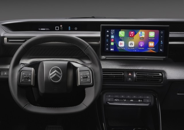 全新雪鐵龍e-C3內(nèi)部采用較為簡約的設(shè)計風(fēng)格,數(shù)字儀表搭配懸浮式中控屏幕和雙輻式多功能方向盤科技感、實用性較強。此外,該車還保留了中控臺空調(diào)控制區(qū)域的實體按鍵,并支持Apple CarPlay等互聯(lián)功能。動力方面,新車搭載一臺最大功率83千瓦的輸出電機,并匹配44千瓦時電池組,純電續(xù)航里程可達(dá)320公里,并且還支持最高100千瓦的快充功能。